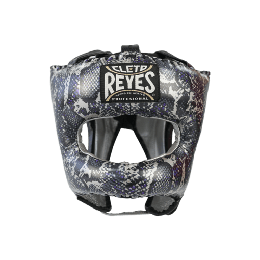 The design is inspired by the viper texture and skin, a great effect has been achieved thanks to digital printing and textured skin. The Traditional Headgear offers a lightweight protective nylon front bar, without sacrificing superior protection. It gives full coverage with a wide-angle vision for you to be able to always see your opponent, is a non-obstructive design. Traditional Headgear is ideal for sparring or heavy workouts. Made with the quality demanded by Cleto Reyes products One size fits all. This Item is available for man and women.