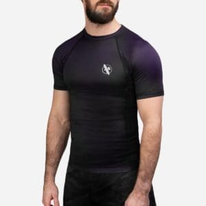The Fusion Short Sleeve BJJ Rash Guard keeps you at your peak when your training gets heated. The smooth, form-fitting design feels like a second skin, wicking away sweat to keep you cool and adapting to your movement with its color-shifting design. Locked in place with a comfortable silicone waistband, the reinforced fabric provides an essential layer of protection to shield your skin from mat burns and scratches during your jiu-jitsu session.