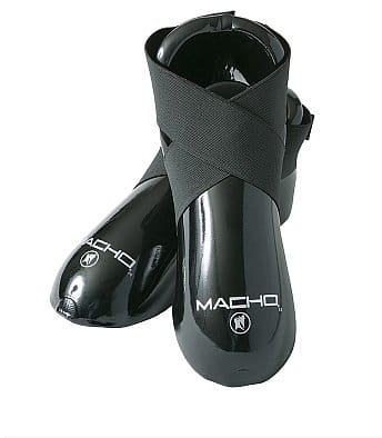 Macho’s Dyna kick has a patented laceless design with stable criss-cross strapping and radial reinforcements at stress points. Bottom vinyl strips to ensure a secure fit during sparring.