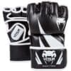 These Venum MMA Gloves offer an optimal shock protection thanks of their high density injected foam. The double closure strap will maintain your fist and your wrist during every fight, avoiding the risks and painful sensations. 4oz density Semi leather High density thread for needle works Layered foam for better protection and shock absorption Top notch comfort feel High wrist maintaining thanks to an adjustable strap Exclusive Velcro strap system for hand pre-positioning Semi leather embossed tags